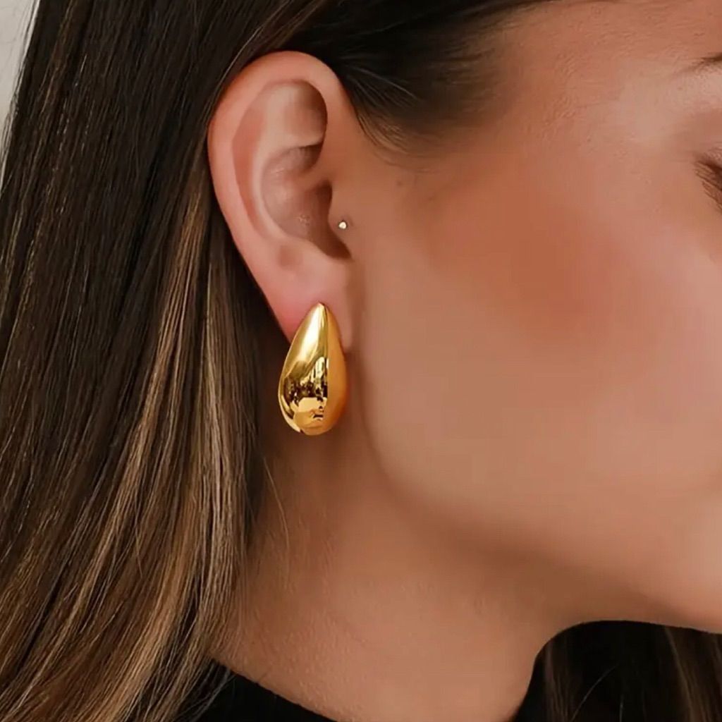 Modern, fluid, and quietly bold—the Aura Droplets are a sculptural take on everyday elegance. With their soft, curved silhouette and high-polish finish, these earrings create a subtle statement that flows effortlessly from day to night.